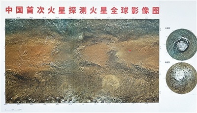 深空探测实验室展厅内的中国首次火星探测火星全球影像图。本报记者康朴摄